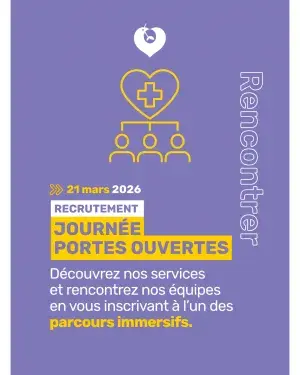 Mis à jour le 19/03/2026 Partager : Journées Portes Ouvertes recrutement le samedi 21 mars 2026 Participez aux journées portes ouvertes de l'hôpital et trouvez votre futur métier Dates Samedi 21 mars 2026